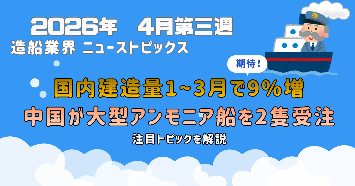 2026年4月の第3週、造船業界では「日本造船の追い風」と「中国の脅威」が同時に進行するという、象徴的な1週間となりました。